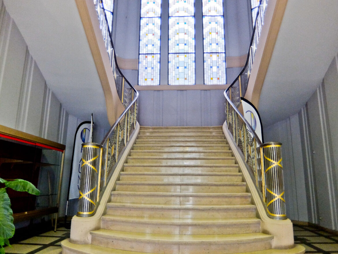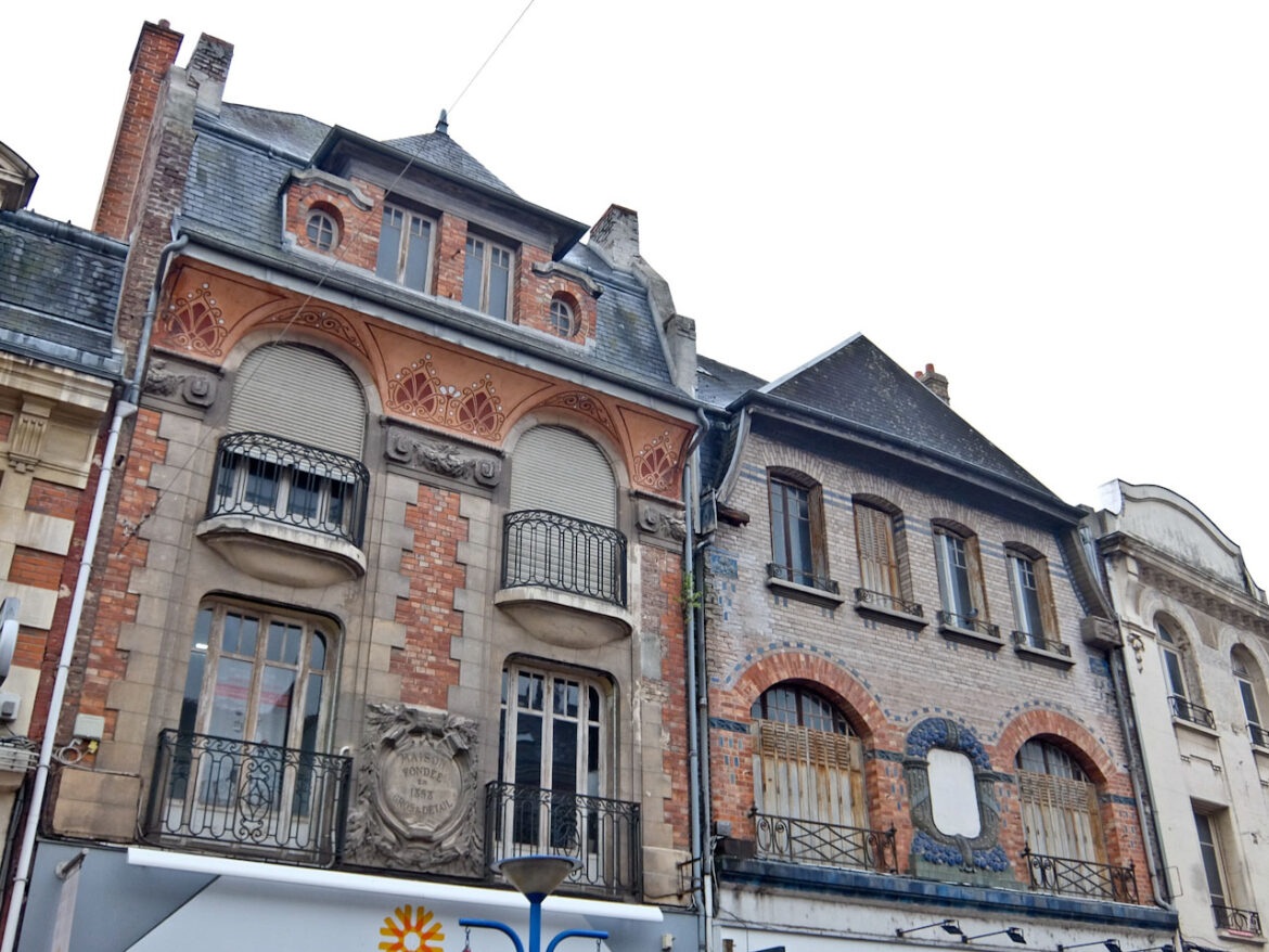 Fortunately the rain has stopped and I cycle ten minutes into Chauny. Most it was destroyed during WW1 but it was rebuilt in the ‘art deco’ style in the 1920’s. You can see this clearly on the buildings’ facades and the most beautiful examples include the interior of the town hall, the fish market and the two churches.