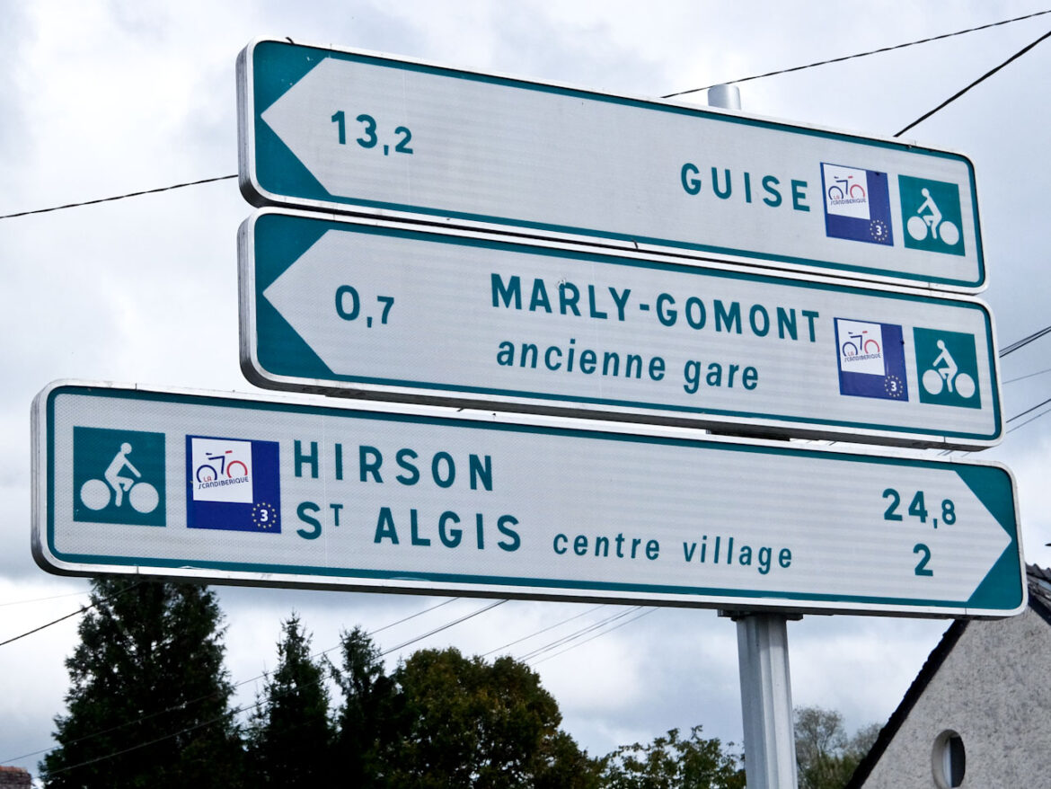 The EV3 continues north following an old railway track in the Oise Valley, through a region that was heavily fought over for centuries. Many churches including Marly-Gomont, Englancourt and Beaurain were fortified by villagers for their own protection.