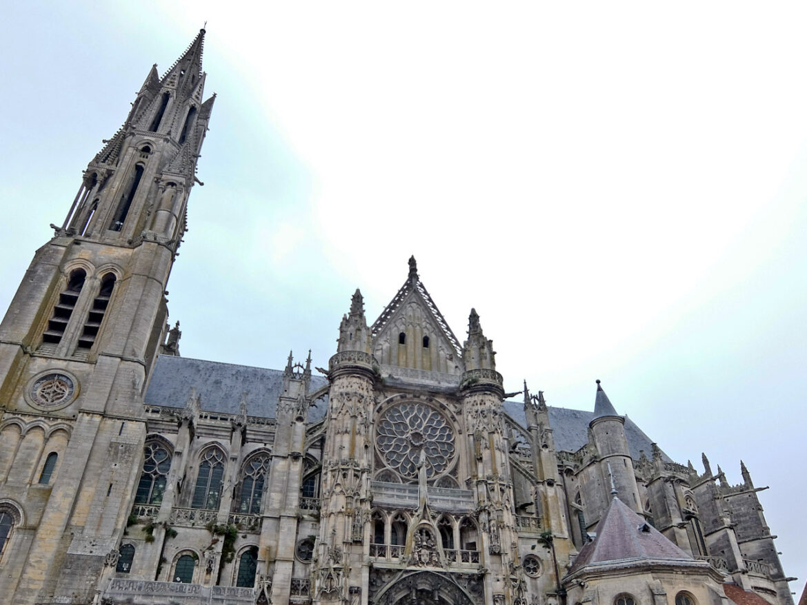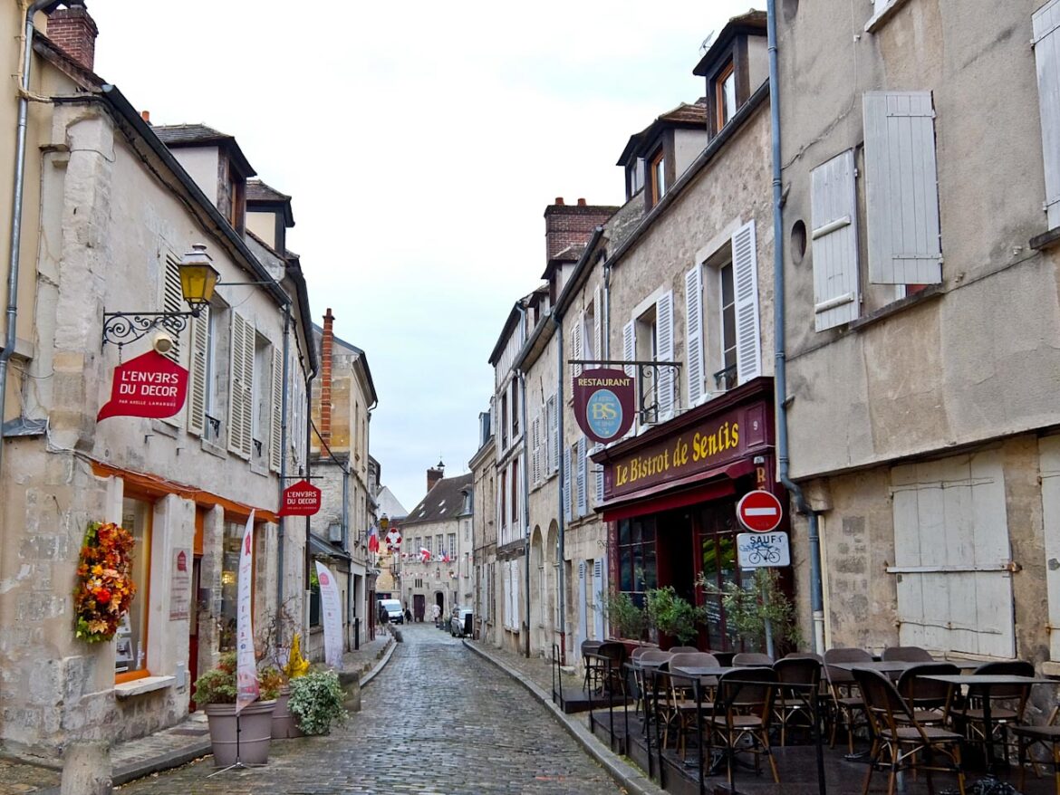 The day is fine, but a little grey, and start through pine and oak woods on quiet lanes and forest paths. My first stop is at Senlis, one of France’s best-preserved medieval towns, with the cobbled streets a bit of a challenge for my bike.  I enter through the Roman ramparts into narrow alleys lined with half-timbered houses and visit the 12th century Gothic Cathedral.