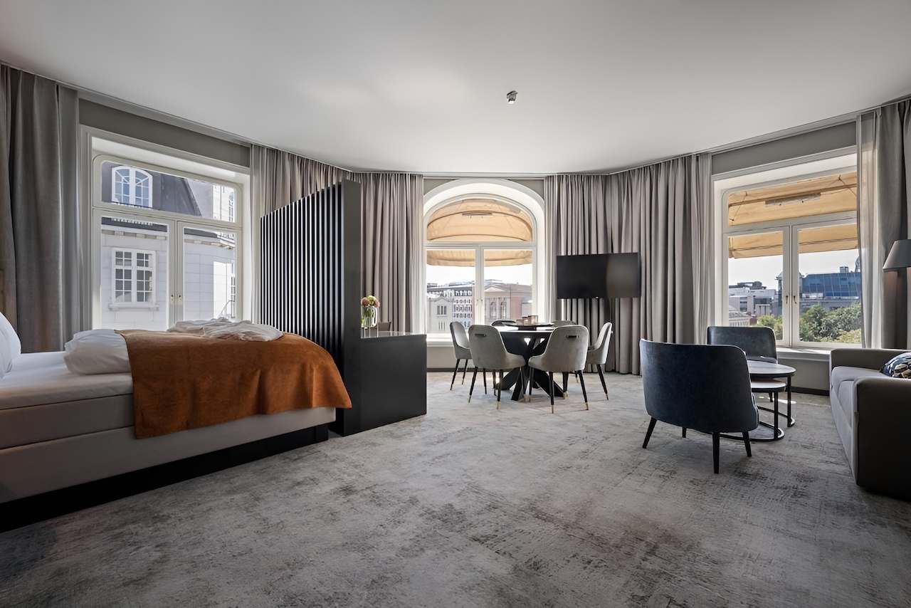 Spread across five floors and fully renovated in 2019, the Karl Johan Hotel offers a choice from compact standard rooms of around 15 square metres to a spacious 60 square metre corner suite.